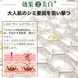 *美白/シミ対策:メラニンの生成を抑え、シミ、そばかすを防ぐ。*エイジングケアとは、年齢に応じたスキンケアのこと。