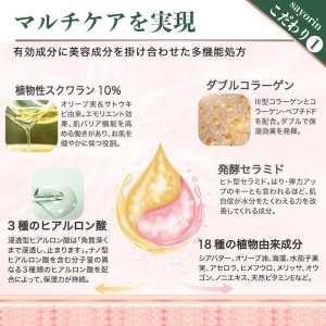 その他の成分:マルトース・ショ糖縮合物、シア脂、オリブ油、ノニ果汁、ステアロイルフィトスフィンゴシン、アセチル化ヒアルロン酸ナトリウム、ヒアルロン酸Na-2、加水分解ヒアルロン酸、海藻エキス-1、アセロラエキス、水ナス果実エキス、黒砂糖エキス、コラーゲン・トリペプチド F、ヒメフウロエキス、メリッサエキス、オウゴンエキス、サクシニルアテロコラーゲン液、セイヨウハッカエキス、BG、シュガースクワラン、植物性スクワラン、濃グリセリン、グリセリン、ステアリン酸ポリグリセリル、メドウフォーム油、親油型ステアリン酸グリセリル、トリエチルヘキサン酸グリセリル、ステアリルアルコール、ジメチコン、ラウロイルグルタミン酸ジ(フィトステリル・オクチルドデシル)、カルボキシビニルポリマー、キサンタンガム、水酸化K、天然ビタミンE、ジエチレントリアミン5酢酸5Na液、1,2-ペンタンジオール、フェノキシエタノール