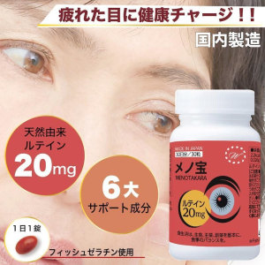年齢っともに日々減少するルテインは体内で生産されません。日々の食事で継続的に摂取することが必要です。 メノ宝 は、1粒で20mgのルテインと他の栄養素を合わせて摂取可能。