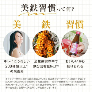 100ml×8本/箱 オーガニックサジーとマンゴーのブレンドで、鉄分補給をもっとおいしく、手軽に。飲み切りタイプで持ち運びしやすく、外出先でも“美鉄習慣”を続けられます。香料・着色料・保存料不使用だから、毎日安心して飲み続けられるのもうれしいポイント◎