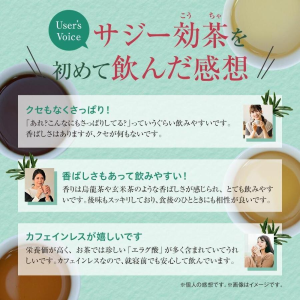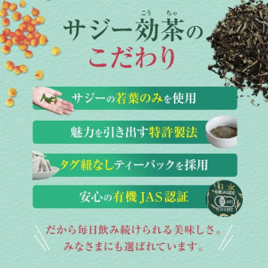 サジーの葉の若葉のみを手摘み。 特許製法にて、ひとつひとつ丁寧に発酵させました。 クセのないスッキリとした味わいが魅力です。