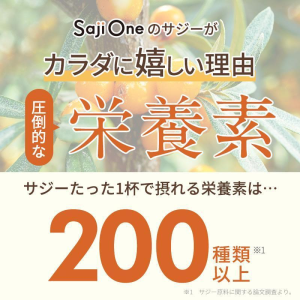 スーパーフルーツと言われている《サジー》には「植物由来の栄養成分」が豊富。ビタミン類をはじめ、鉄分を含むミネラル類、アミノ酸類、ポリフェノール・フラボノイド類、有機酸類、食物繊維などその他合わせて、なんと200種類以上!手軽に摂れるので、毎日続けやすいのもポイントです。